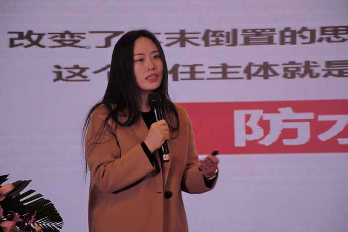 作為山東鼎旺天成防水科技有限公司的重要材料供應(yīng)商,加拿大凱頓國(guó)際公司中國(guó)代表處總經(jīng)理周藝妹也來(lái)到了現(xiàn)場(chǎng)并作精彩演講。
