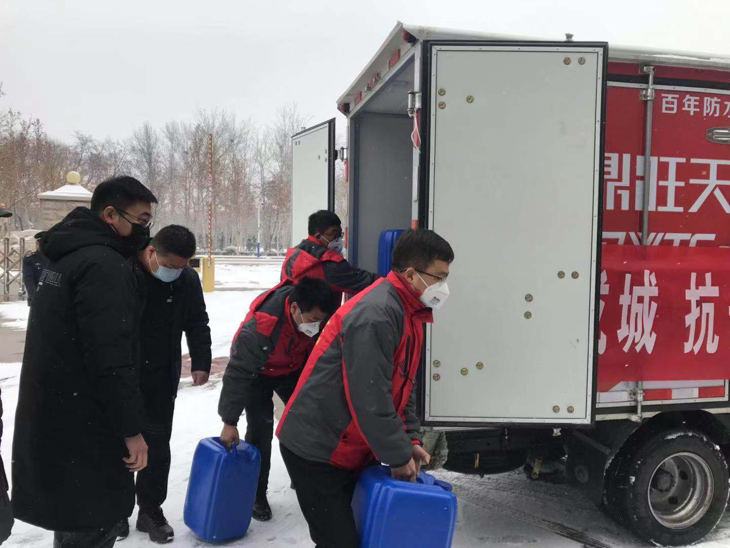 2月5日、6日,德州市慈善義工聯合會與會員企業(yè)山東鼎旺天成防水科技有限公司成員,來到德州日報社,為員工送來750公斤消毒液。