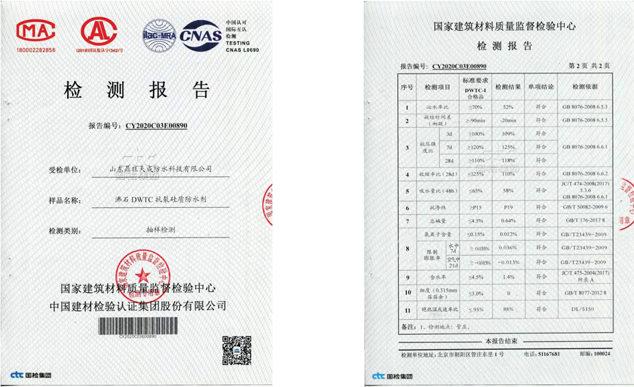 2)、沸石DWTC抗裂硅質(zhì)防水劑